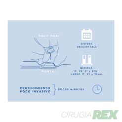 Aguja Poly Port Safe (Poly Port SF), con tubo de acero de pared ultra delgada y punta tipo Huber, posee un cabezal que permite la segura inserción en el Portal y la fijación al cuerpo del paciente para infusiones prolongadas.