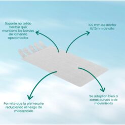 Tiras de sutura reforzadas estériles de no tejido recubiertas uniformemente con un adhesivo hipoalergénico libre de látex. Excelente adherencia en cualquier tipo de piel, no deja marcas ni residuos.