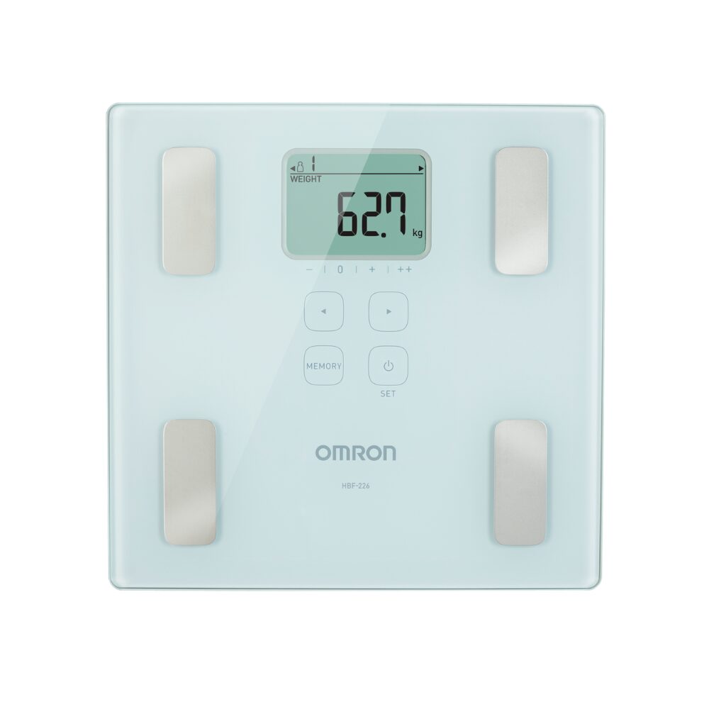 CONTROLA TU PROGRESO: Perfecto para quienes necesitan monitorear sus avances, te ayudará a alcanzar tus metas. Tiene 6 indicadores corporales: -Peso corporal -Índice de masa corporal (IMC) -Porcentaje de grasa corporal -Porcentaje de músculo esquelético -Nivel de grasa visceral -Metabolismo basal Incluye: – Balanza de control corporal OMRON HBF-226 – Manual de instrucciones – 4 pilas alcalinas