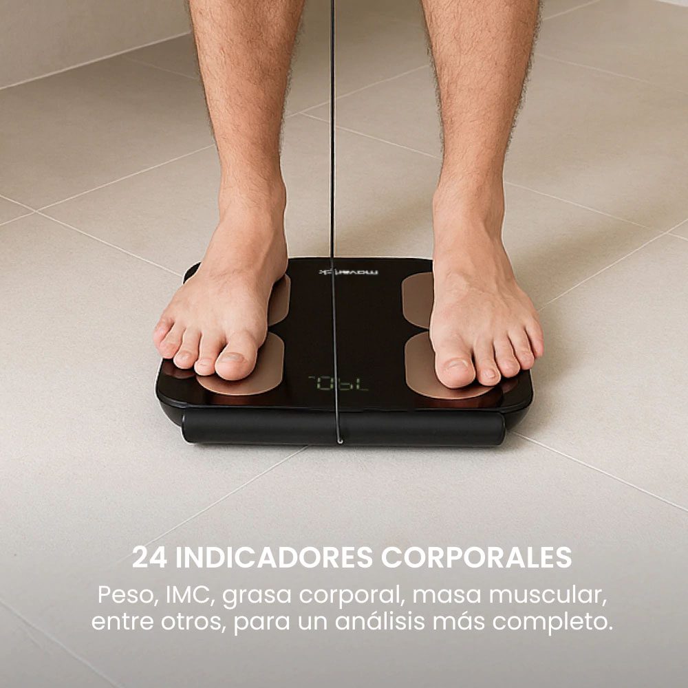 Descubrí la SmartScale8, la báscula que va más allá de medir solo tu peso. Con 24 indicadores corporales como grasa corporal, masa muscular y más, te ofrece un análisis completo de tu salud.