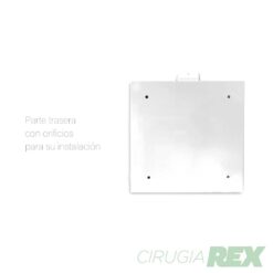 Cuerpo fabricado en chapa de una sola pieza con soldadura lineal. La puerta sobrepuesta, incorpora un burlete de goma lo que asegura la total hermeticidad del gabinete que así resulta apto para ser instalado en exteriores. La ventana de visualización de la puerta es de material acrílico. Pintura epóxica de aplicación electrostática de color blanco, posee el adecuado tratamiento antioxidante. Este método asegura la mejor calidad de terminación y duración.