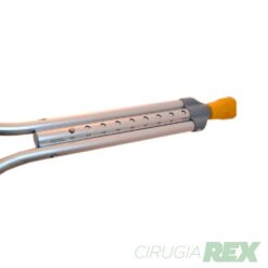 La abrazadera, en el extremo más alto de la muleta es donde apoyamos la parte posterior del antebrazo. Debe quedar unos 5 cm por debajo del codo, para no bloquear dicha articulación. Los codos tienen que estar ligeramente flexionados al agarrar la empuñadura.