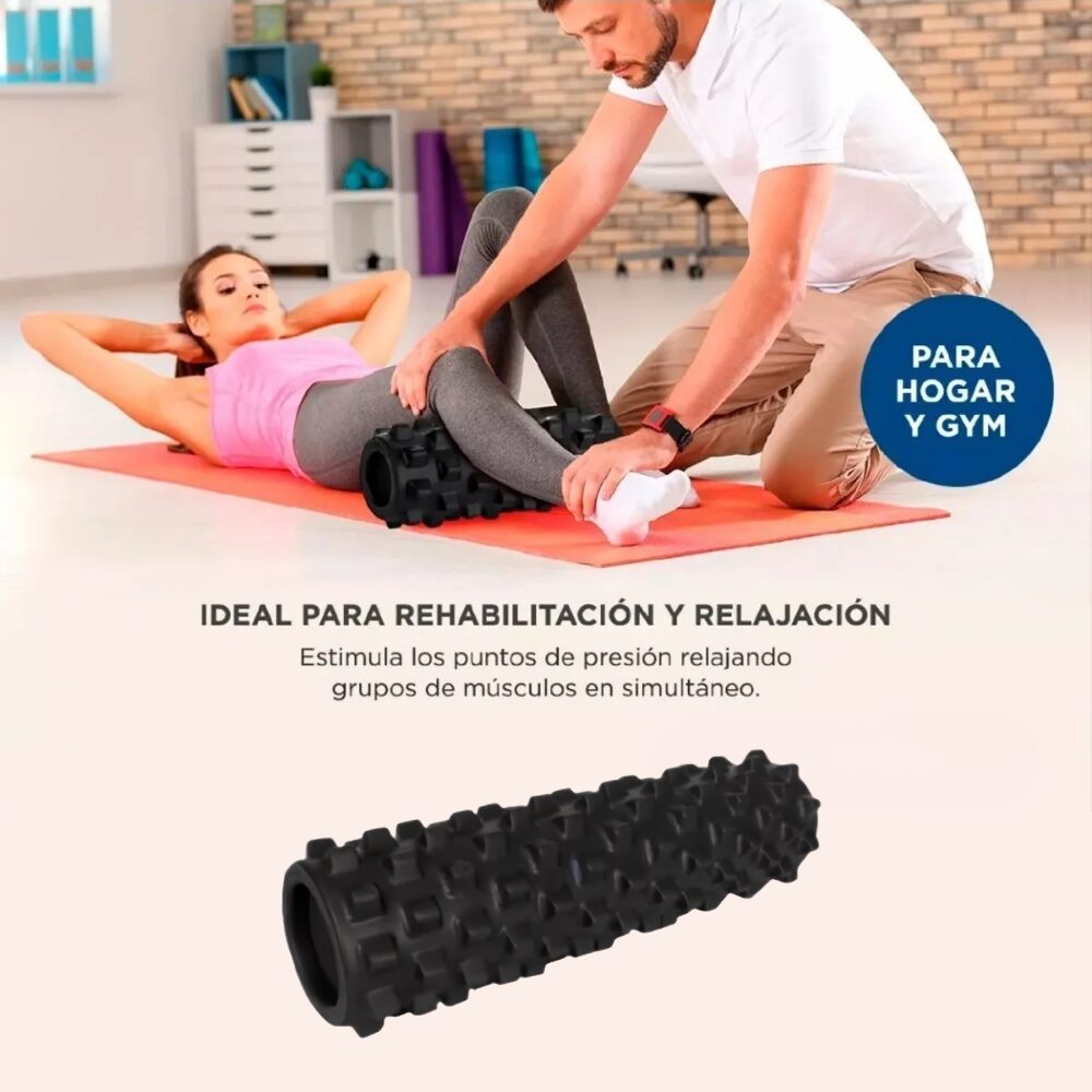 Rollo Goma Eva Foam Fitnes 45 Cm Yoga Pilates Maverick + Rodillo Masajeador Barra Masajes 47cm Maverick Starling.