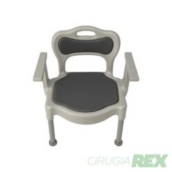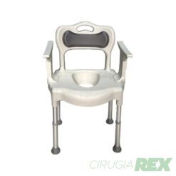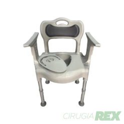 Con una estructura de plástico reforzado, la silla es un producto resistente y ligero, soportando un peso máximo de hasta 100 kg. Su diseño práctico incluye una bacinilla con tapa higiénica, facilitando el uso y haciendo que la experiencia sea más cómoda y segura.