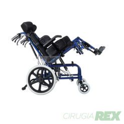 Además, trae cinturón de seguridad para cintura y tórax, cuña abductora, ruedas antivuelco y frenos a palanca.