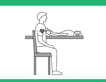 Es muy importante para los valores de medición, colocar el tensiómetro a la misma altura del corazón. Una altura mayor o una postura más profunda puede desviar el valor real.